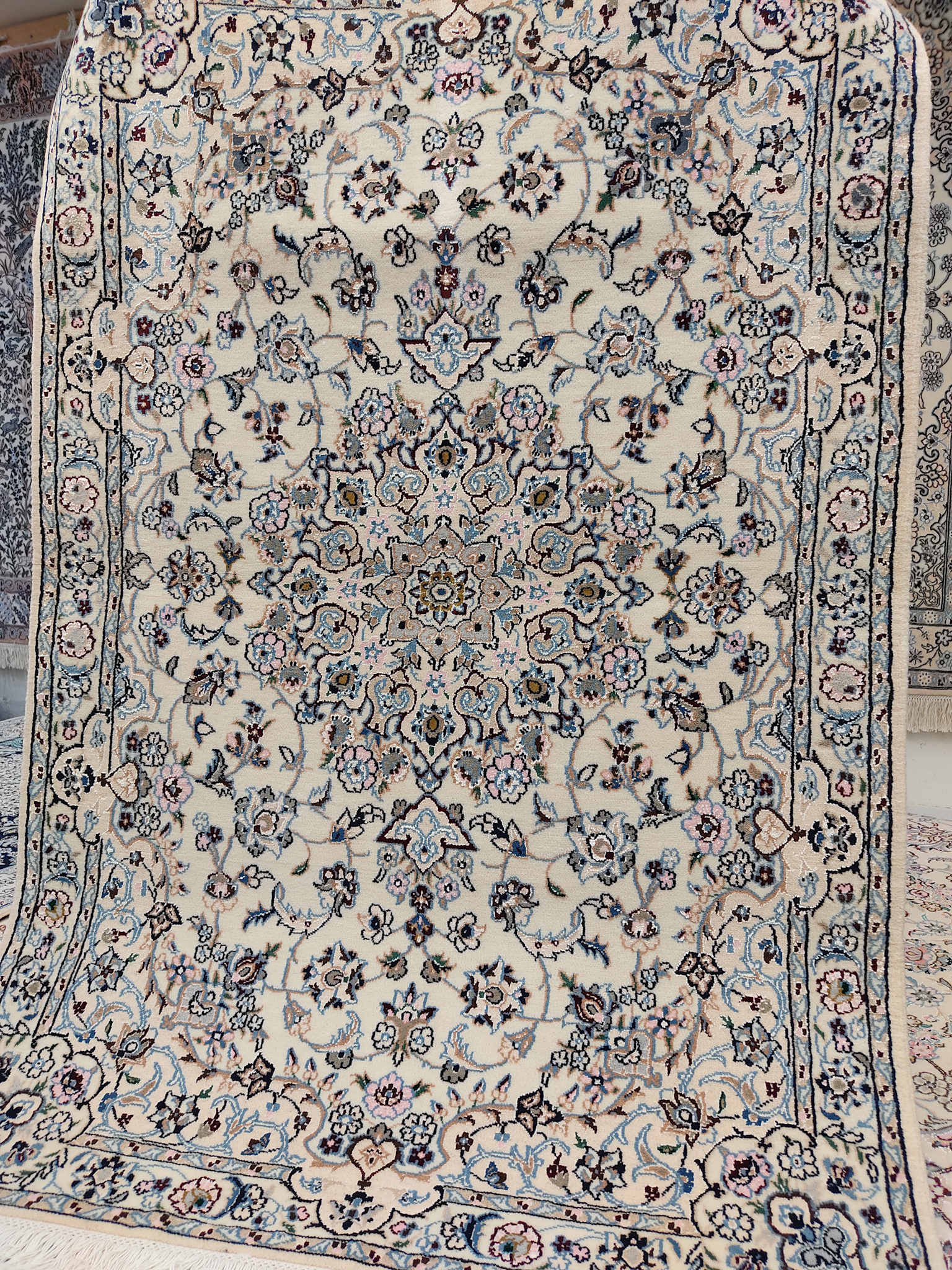 فرش دستباف نایین ذرع و نیم کرم گل ابریشم