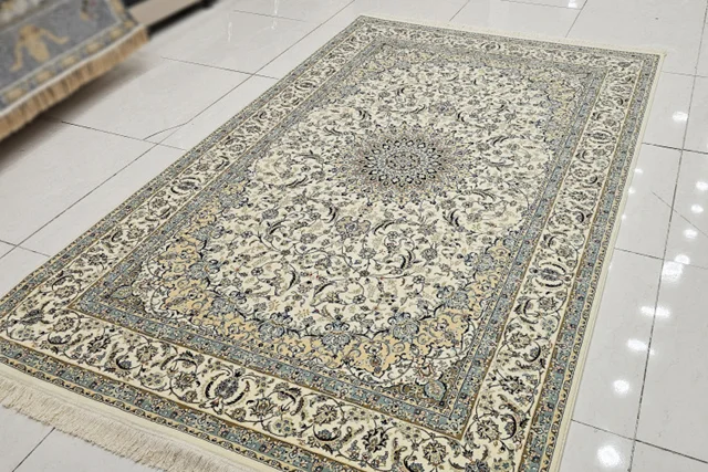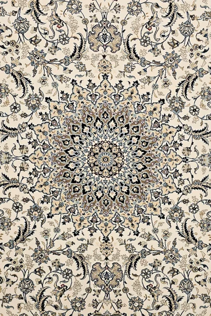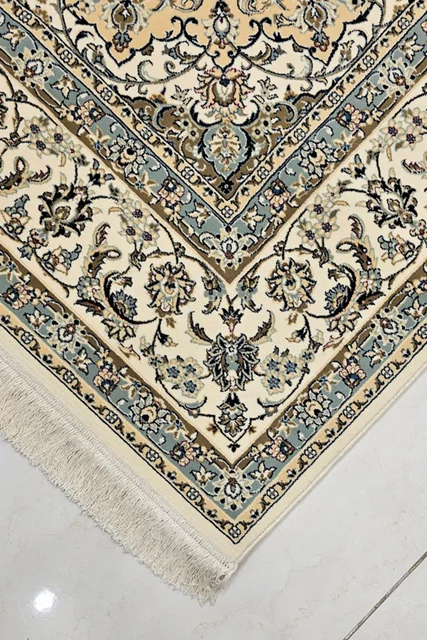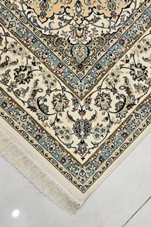 فرش کویر یزد کلکسیون زهره نوین کدH2 با رنگ کرم و طرح اصیل نایین، انتخابی لوکس و چشم نواز برای خانه های ایرانی است.