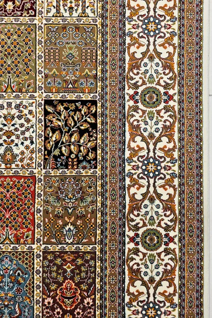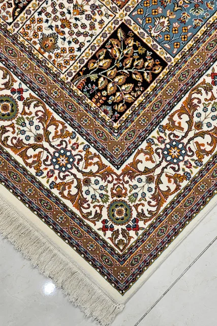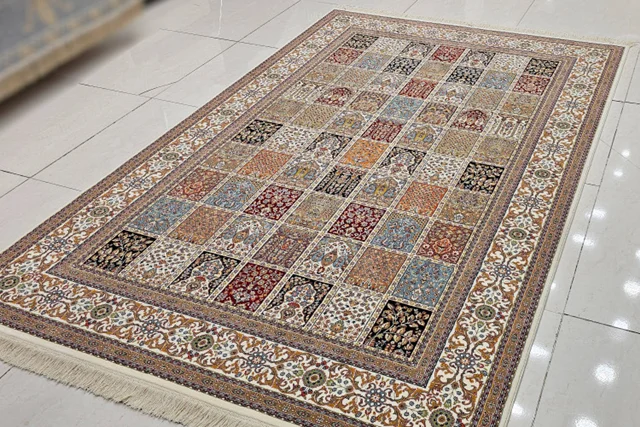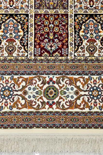 فرش کویر یزد کد Y005-2500 با طرح خشتی و رنگ کرم، ترکیبی بینظیر از اصالت و شکوه فرش ایرانی را به خانه شما می آورد. این طرح الهام گرفته از هنر کهن ایران، با نقشه خشتی کلاسیک، به هر دکوراسیونی حس گرما و صمیمیت میبخشد.