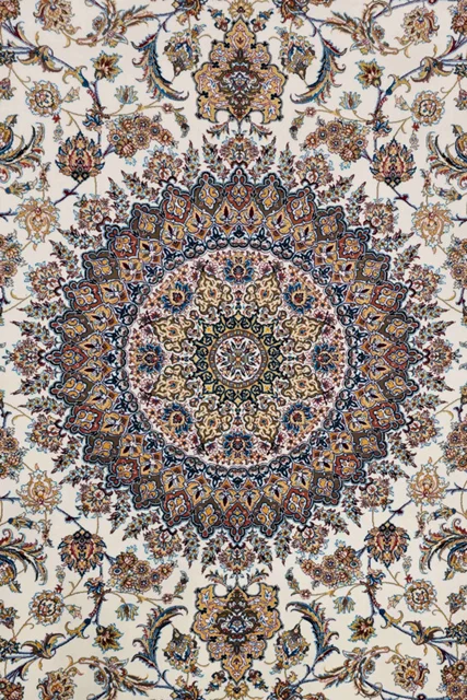 فرش ماندگار نقشه اخوان رنگ کرم دستبافگونه
