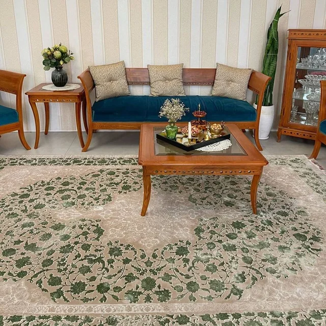 فرش کرم سبز کد 71020 یکی از طرح های محبوب و پرفروش فروشگاه فرش بزرگمهر هست. این فرش با نخ اکرلیک هیت ست بافته شده که کاملا ضد حساسیت و بدون پرزدهی بوده و دوام بالایی دارد. رنگ بندی نسکافه ای و سبز این فرش به خوبی با سبک های مدرن، نئوکلاسیک و مینیمال هماهنگ میشود.