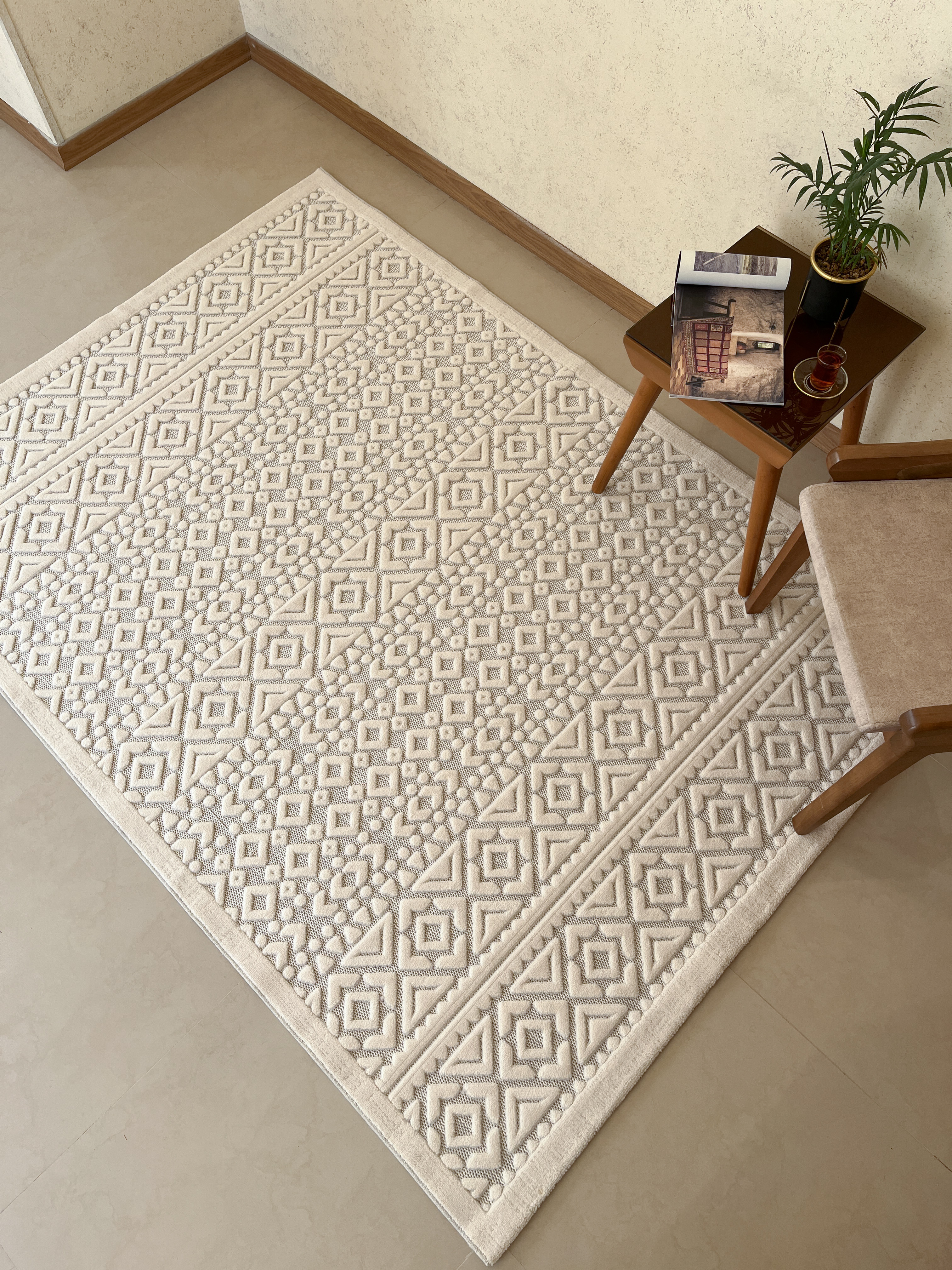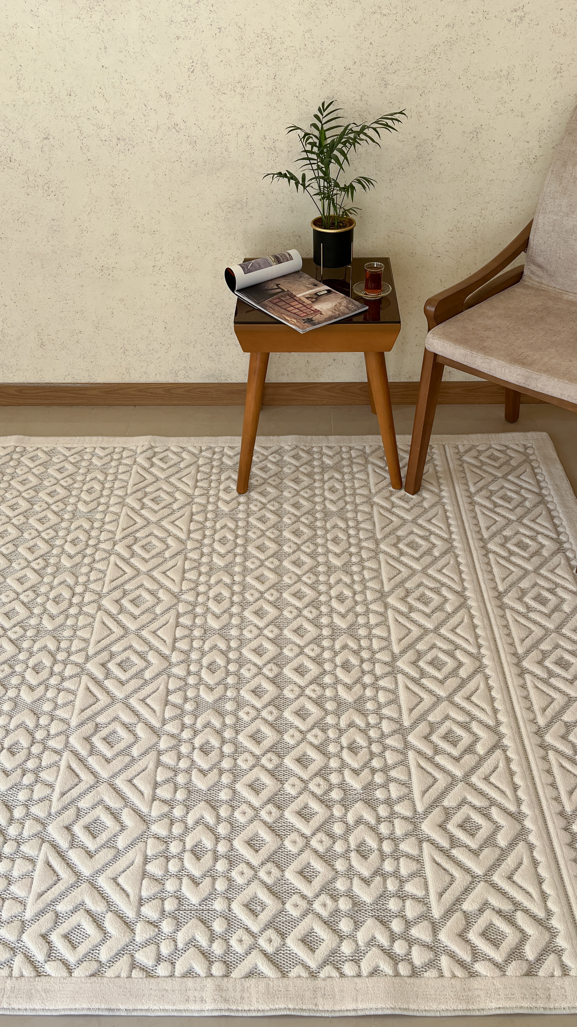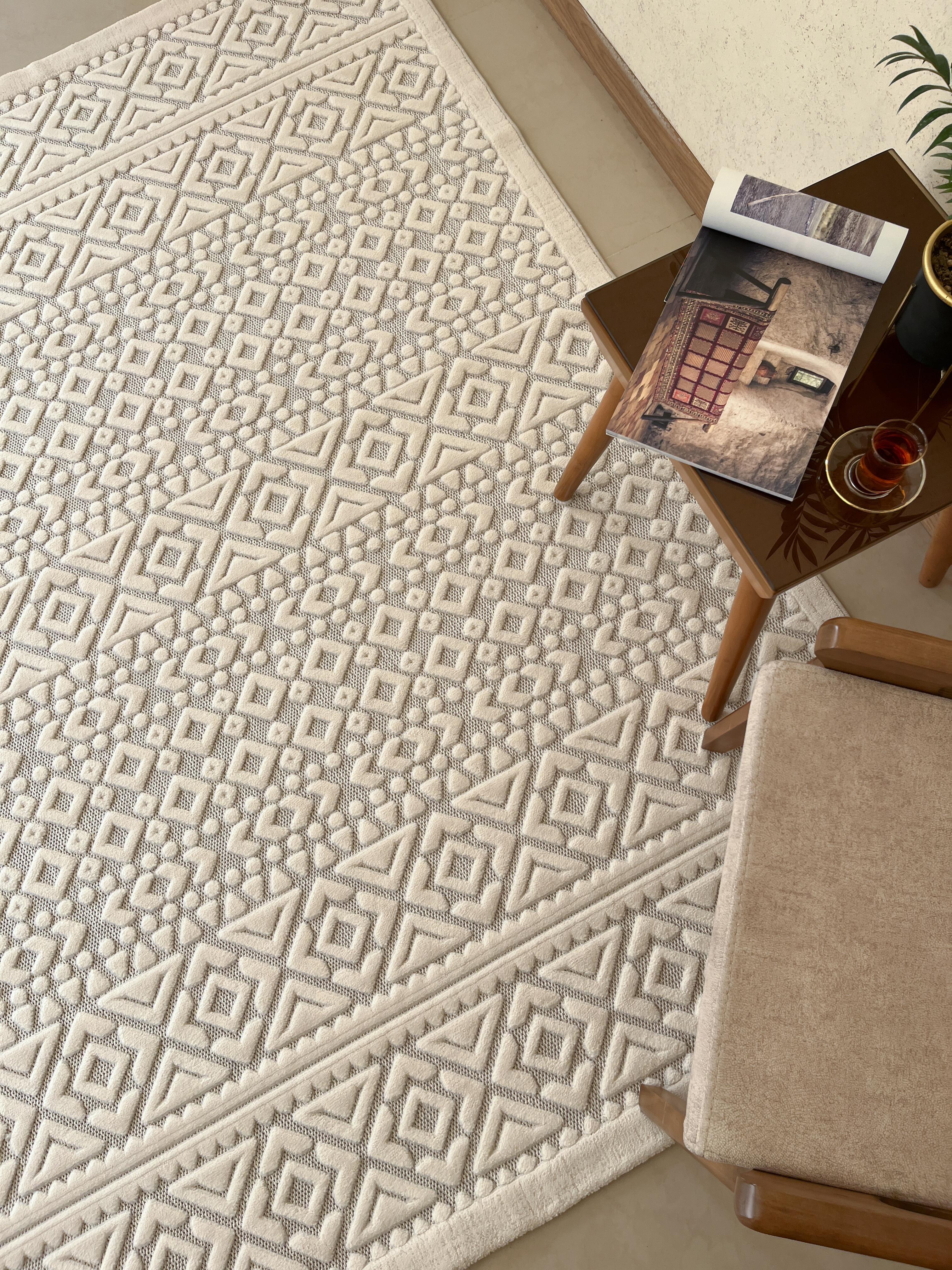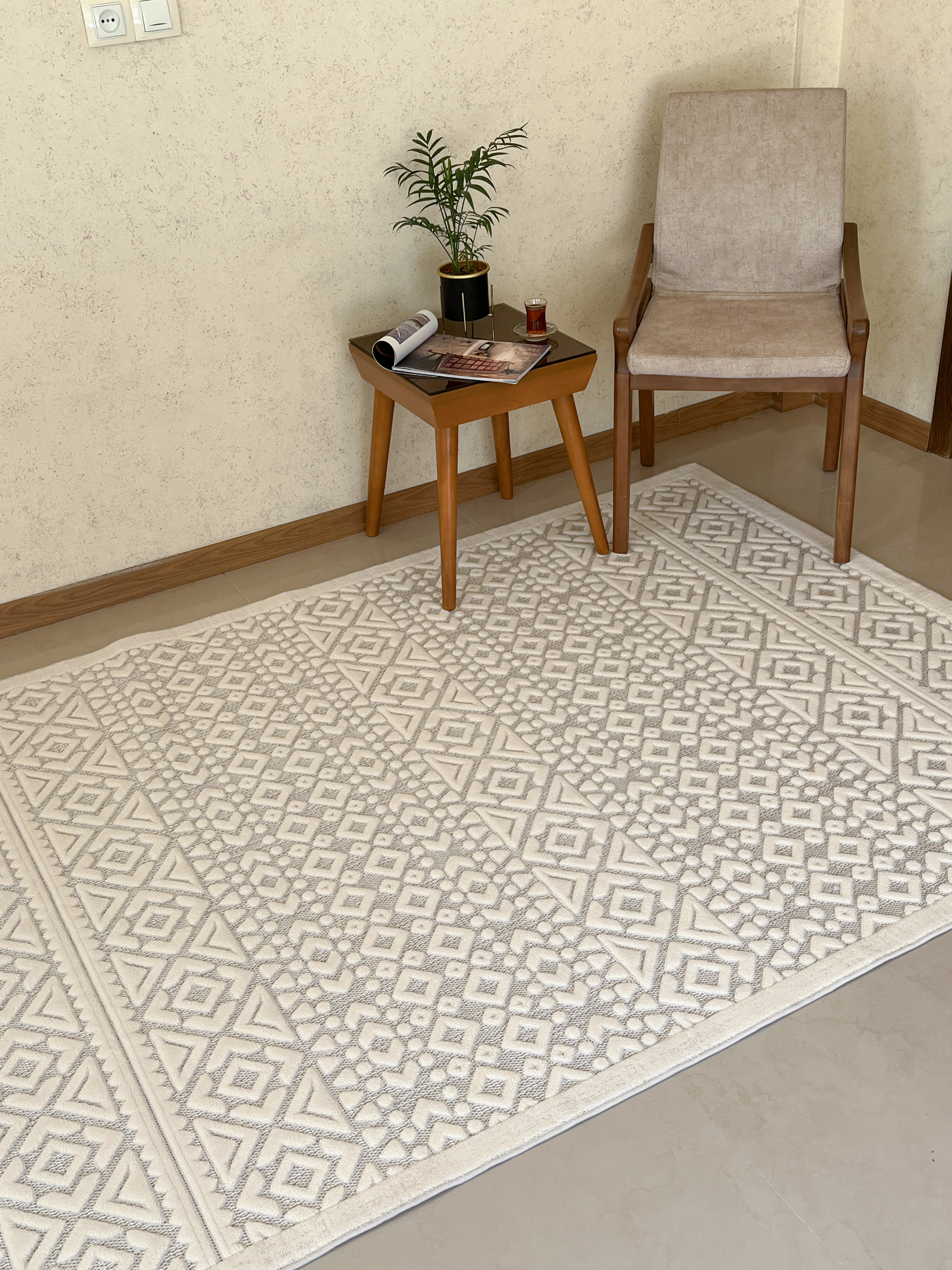فرش پینترستی سفید کد 7107 مینیمال و مدرن