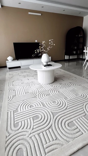 فرش پینترستی سفید کد 7113 مینیمال و مدرن