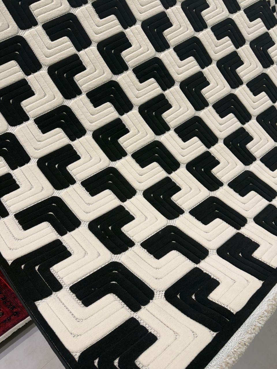 فرش پینترستی سفید مشکی، انتخابی خاص برای طرفداران دکوراسیون مدرن و مینیمال است. این مدل گزینه ای عالی برای پذیرایی، نشیمن و حتی فضاهای مینیمال است و جلوه ای چشم نواز به دکور شما میدهد.
